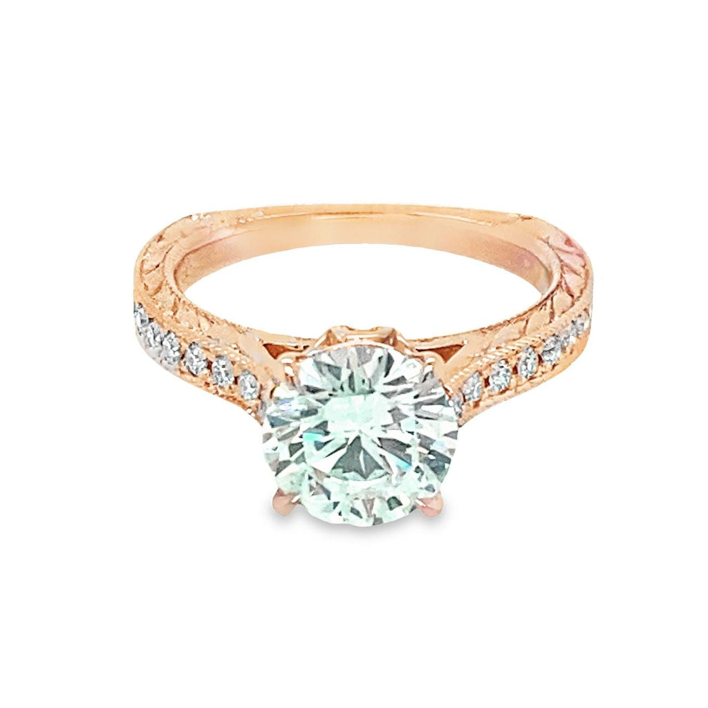 Experience the ultimate symbol of love with our 1-1/2ct D-color Diamond Engagement Ring. This stunning ring features a rare D color natural diamond over 1.5 carats, hand-engraved euro shank, and a beautiful rose gold cathedral setting. Designed and created in-house, this estate ring is a true showstopper. Take her breath away with this exquisite, one-of-a-kind engagement ring.