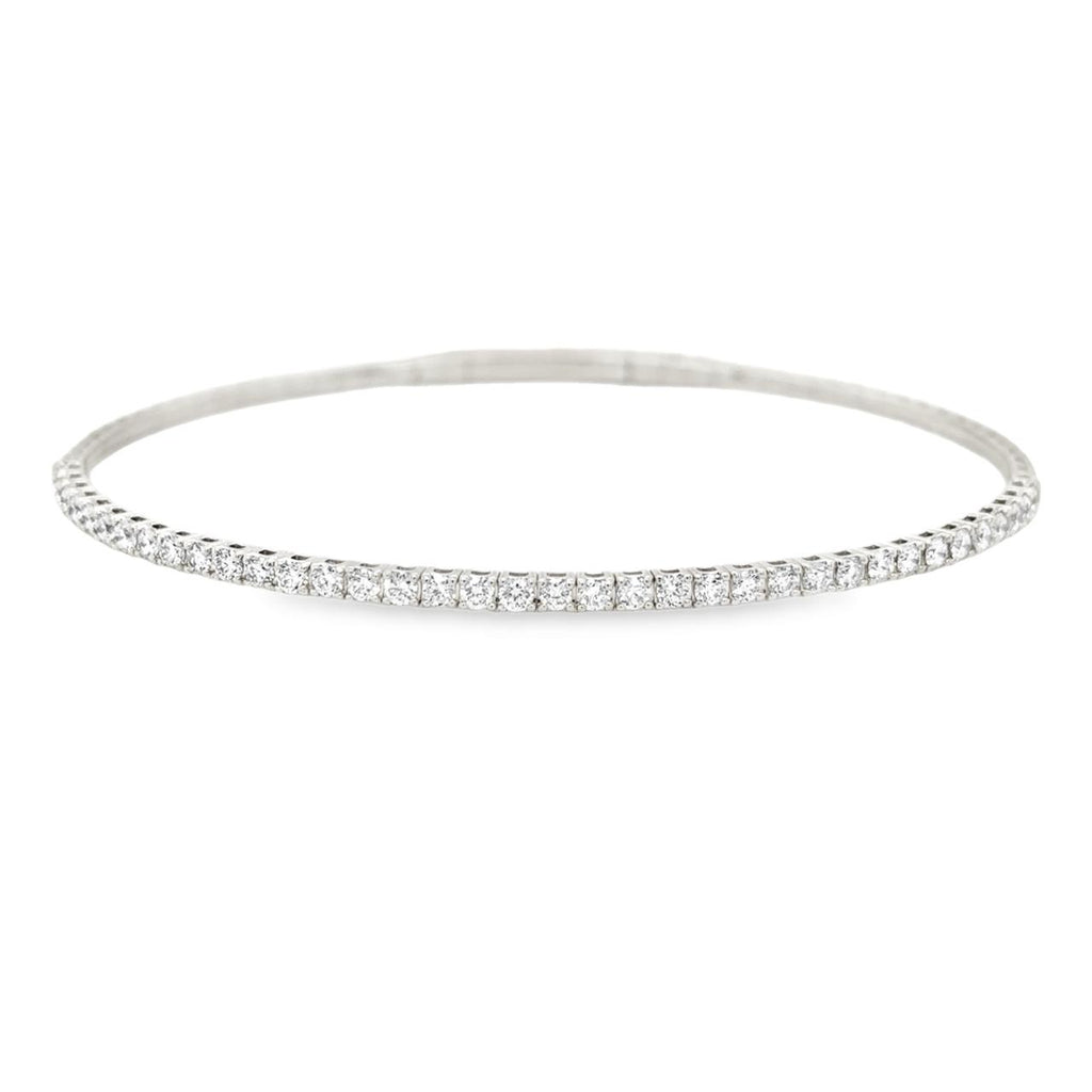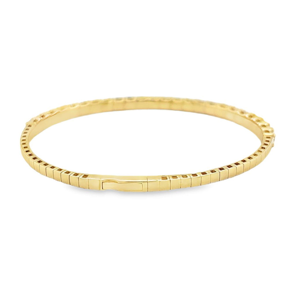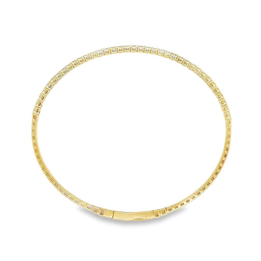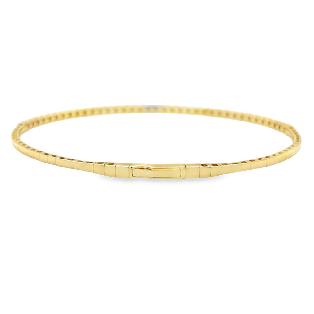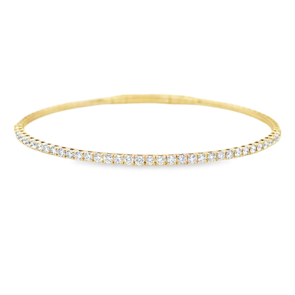 Indulge in luxury with our Stackable Lab Diamond Flex Bangle. Featuring beautiful lab-grown diamonds in a flexible bangle design with a clasp, this stunning piece will elevate any outfit. The diamonds on only the top half give the illusion of a bracelet with twice the carat weight, making it a truly premium accessory. Crafted in vibrant yellow gold for a touch of elegance.