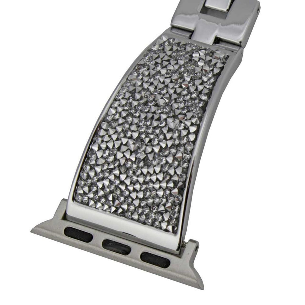 Transform your Apple watch into a stunning accessory with our Crystal-Encrusted Silver-Tone Apple Watch Band! With its adjustable length and dazzling crystals, this fashion band adds elegance and glamour to any outfit. No tools needed - simply adjust and sparkle your way through the day!