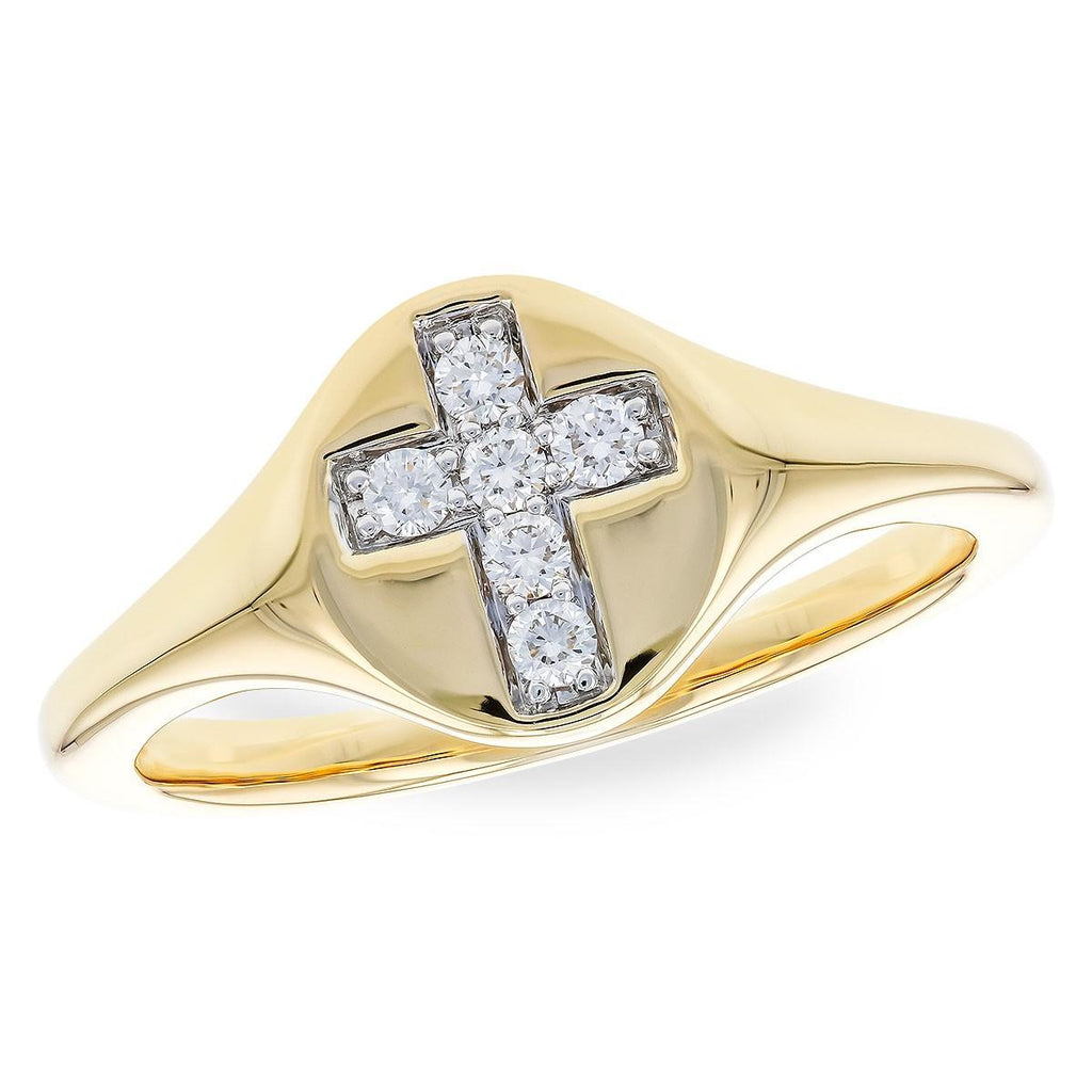 Exude elegance with the Diamond Cross Signet Ring. Crafted with diamonds and set in yellow gold, this cross signet ring is not only a beautiful addition to your jewelry collection, but also a powerful expression of faith. Make a statement with this luxurious piece and elevate your style to a higher level.