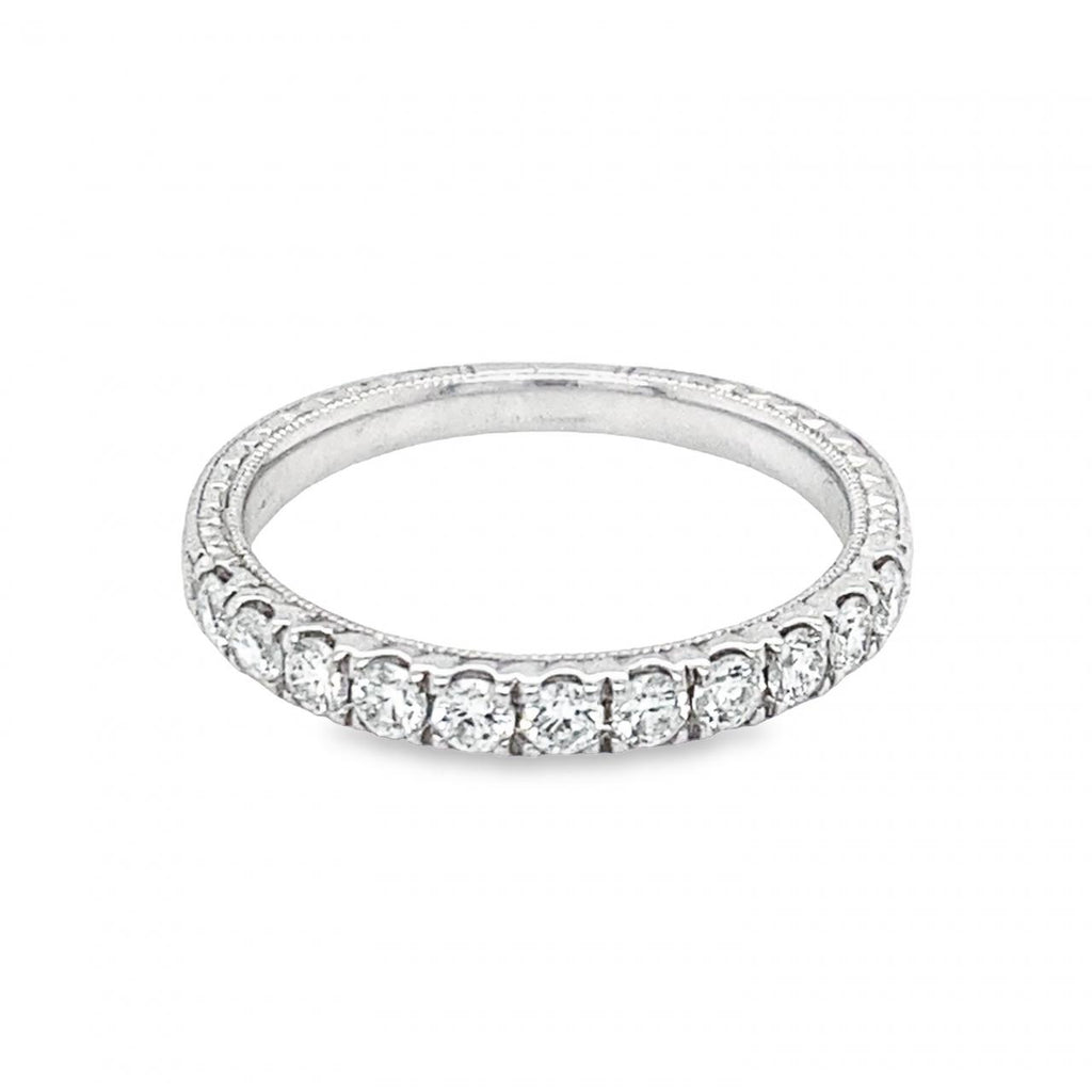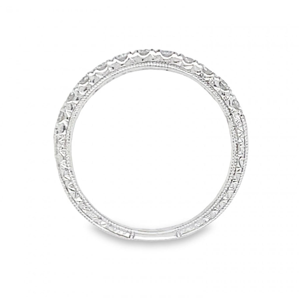 Make a stunning statement on your special day with our Engraved Diamond Wedding Band. Crafted in elegant white gold, the engraved shank adds a personal touch while the sparkling diamonds add a touch of luxury. This wedding band is the perfect symbol of your everlasting love and commitment.