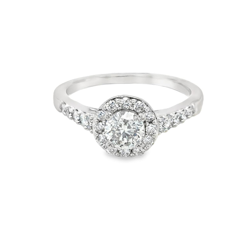 Make a statement of love with our Estate Halo Engagement Ring. This classic piece features a cathedral setting in elegant white gold, adorned with a halo of genuine diamonds. A timeless and precious estate piece that will capture your heart and last a lifetime.