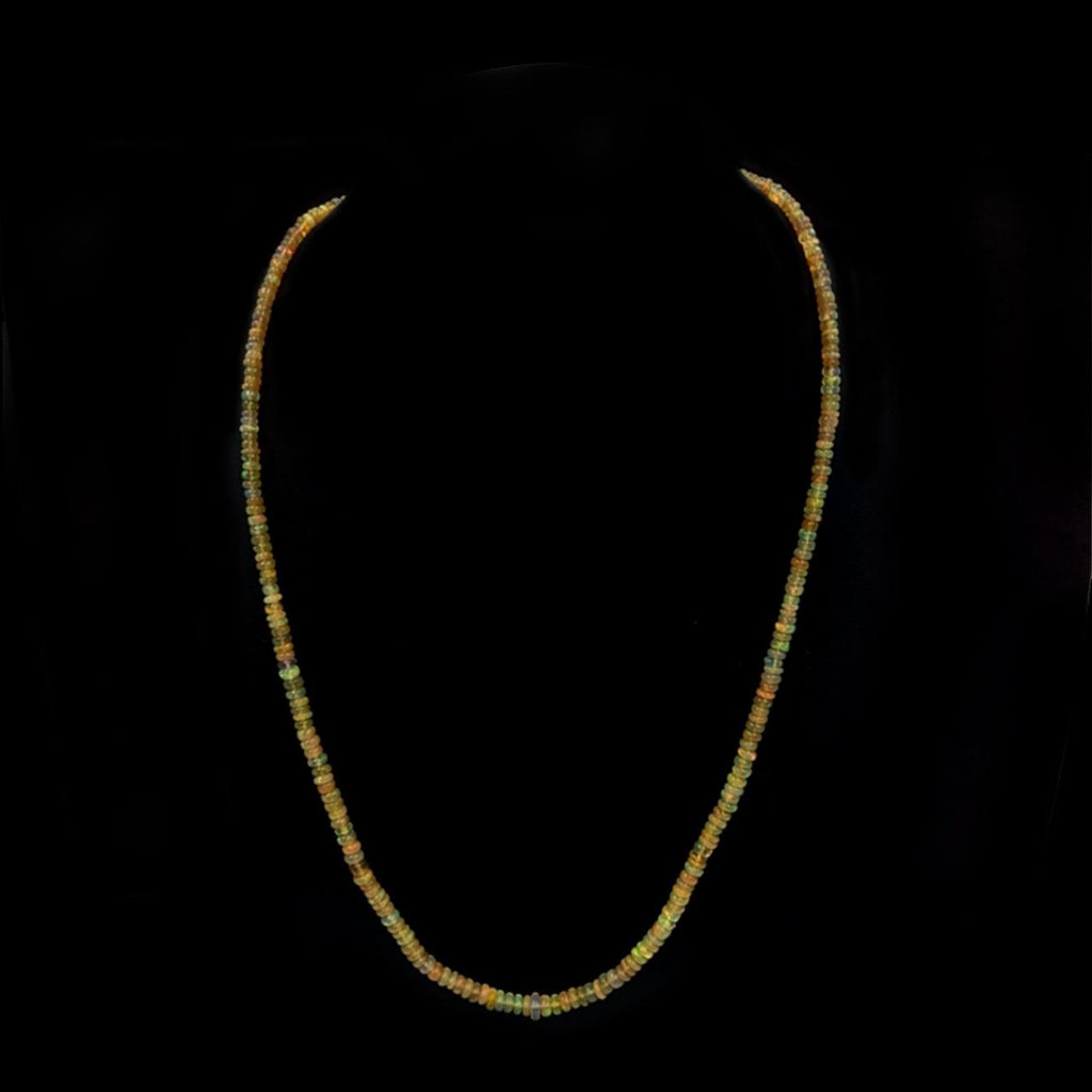 Effortlessly elevate your style with our Orange Opal Strand Necklace. The rounded beads in varying shades of orange create a unique and eye-catching look. With an adjustable length and sterling silver clasp, it's perfect for layering necklaces. Embrace the vibrant energy and add a pop of color to any outfit.