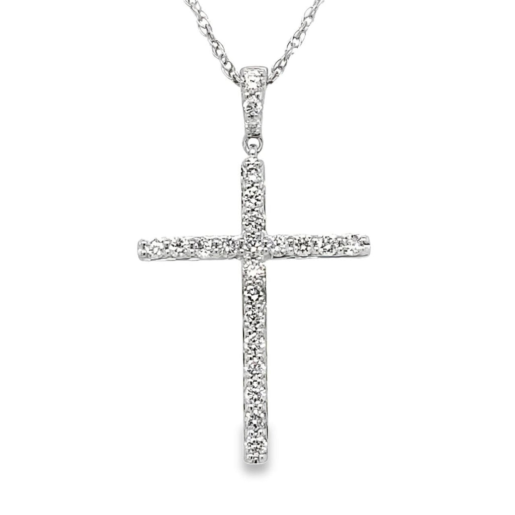 Indulge in the luminous elegance of our Large Cross with Diamonds. With a stunning diamond pendant and additional diamonds on the bail, this piece exudes sparkling radiance. Made with luxurious white gold, this cross is the perfect accessory to add a touch of glamour and faith to any outfit.