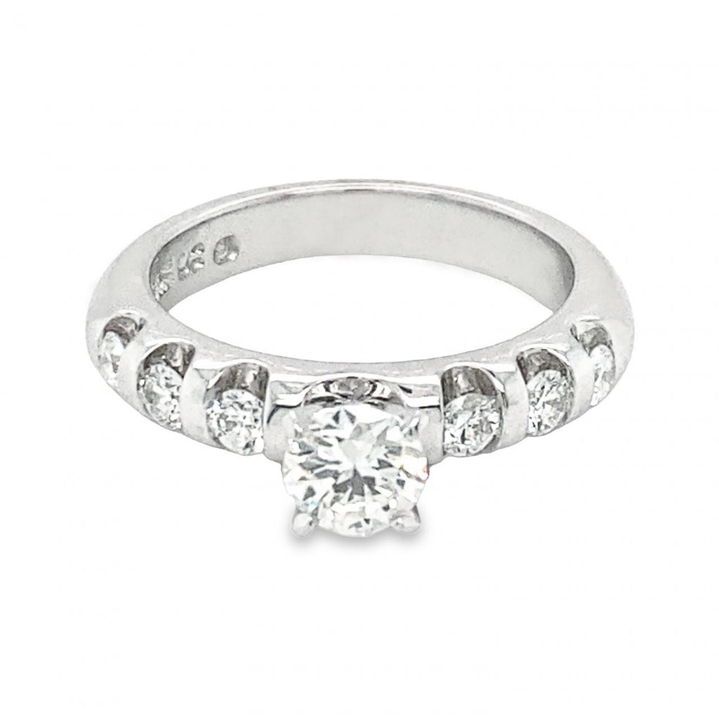 Introducing our stunning Multi-Diamond Engagement Ring! Featuring a brilliant half carat center diamond, bar-set side stones, and a wide and unique design, this ring is sure to impress. Make a statement and show your love with this one-of-a-kind ring.