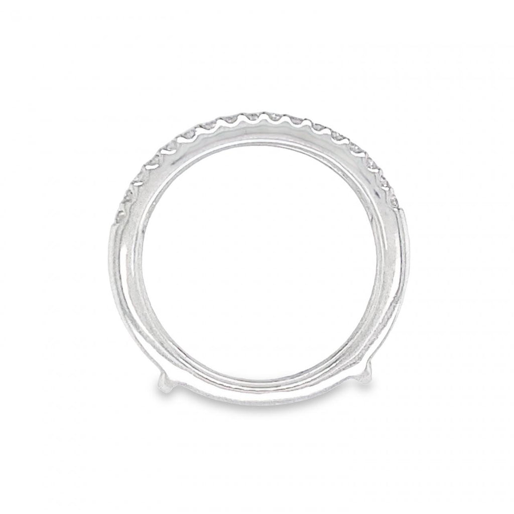 A ring guard is meant to surround an engagement ring on both sides, and really dresses up a solitaire or three-stone ring. This sparkling guard can be worn instead of a wedding band.