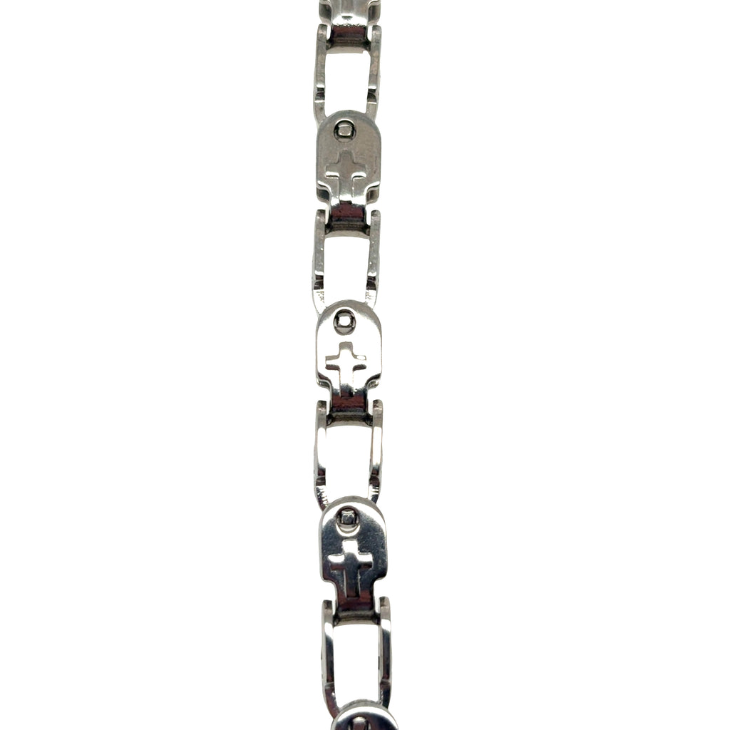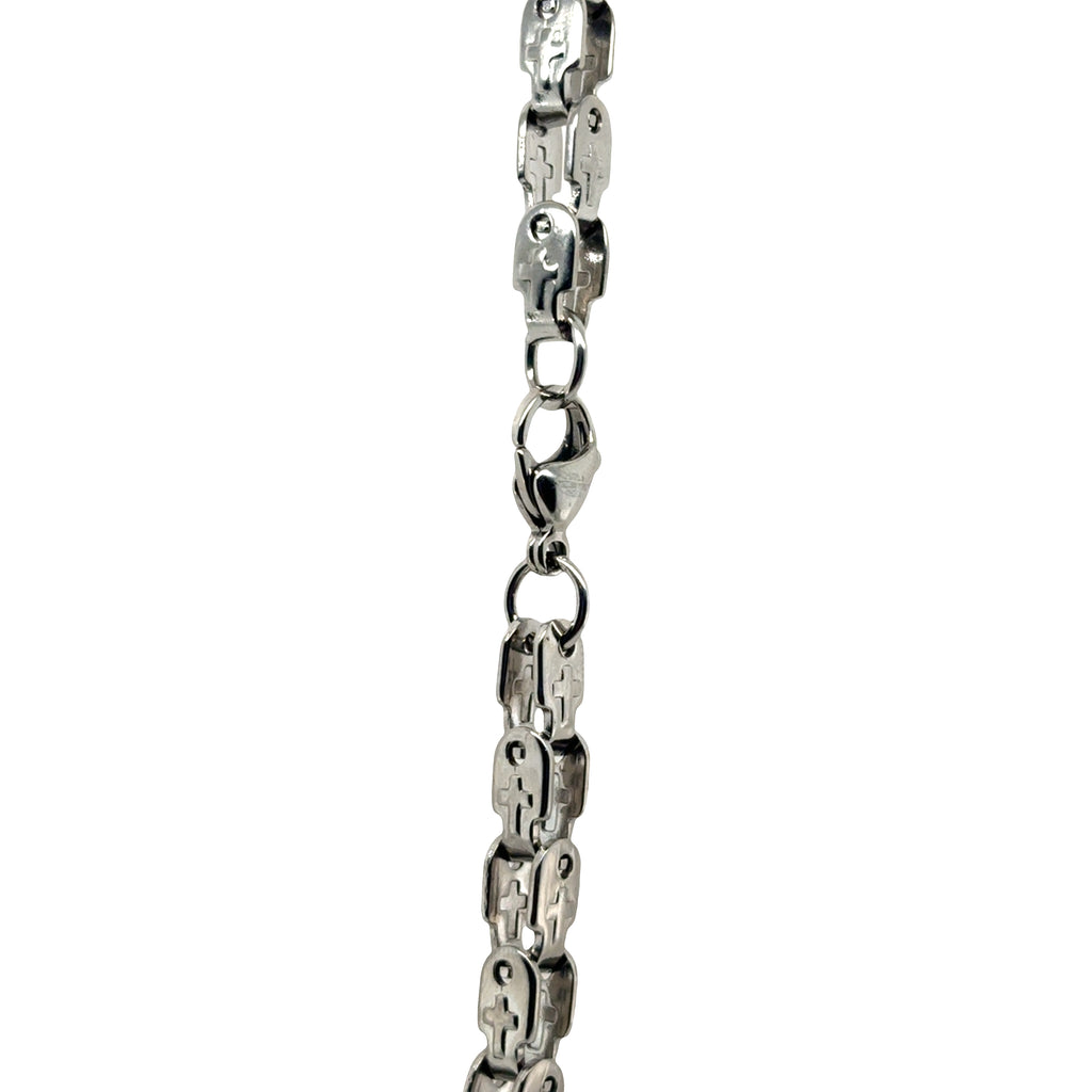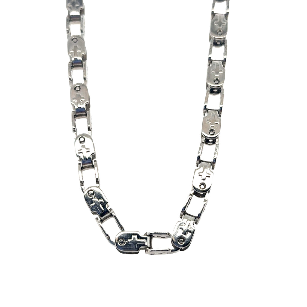 This 18-inch stainless steel open link chain features 5.5mm links and a secure lobster clasp, combining durability with a sleek, modern design. Its robust construction ensures long-lasting wear, making it an ideal choice for everyday use or layering with pendants. The polished finish resists tarnish, maintaining its shine over time. Perfect for those seeking a reliable and stylish accessory crafted with expert precision.