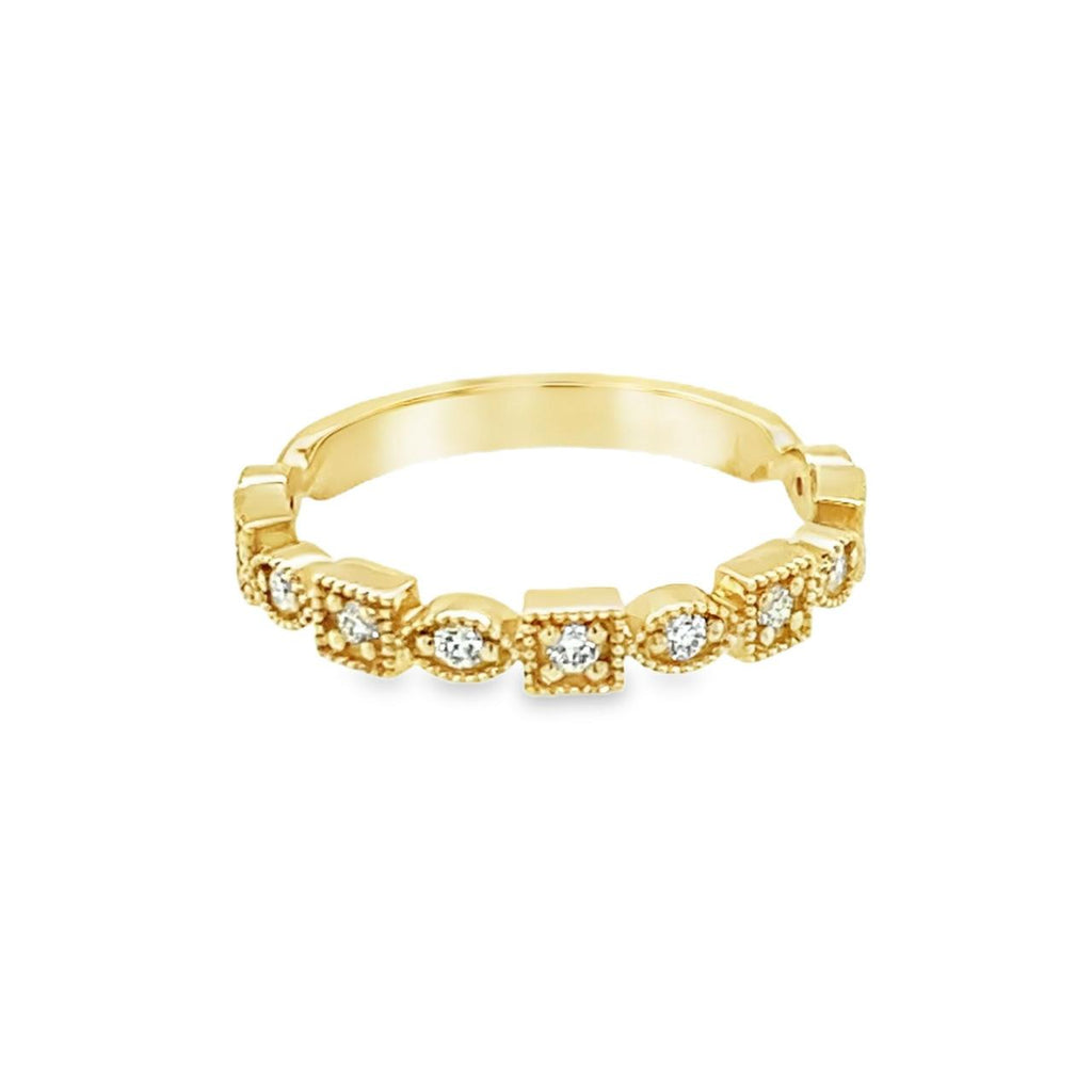 Elevate your style and add a touch of sparkle with our Alternating Square Marquise Stackable Band. Featuring square and marquise plates bedecked with dazzling round diamonds, this ring boasts a delicate milgrain outline and intricate engraving on the bottom. Whether as a fashion ring or wedding band, this versatile piece is perfect for stacking and is expertly created in our own workshop.