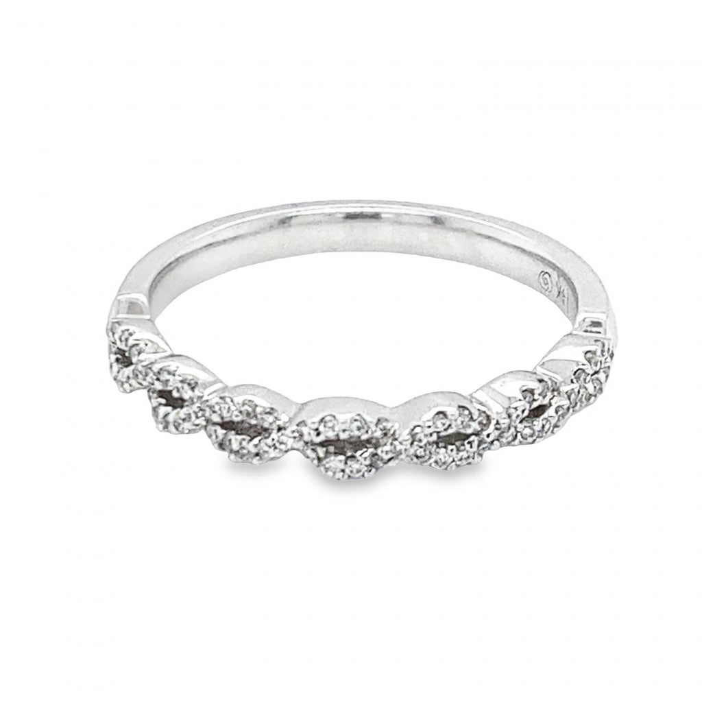 Elevate your special day with our stunning Twist Design Wedding Band. Crafted from alluring white gold, this charming ring features a diamond-adorned twist design. Add a touch of elegance and sparkle to your wedding ensemble with this unique and captivating piece. Order now and make your wedding day unforgettable!
